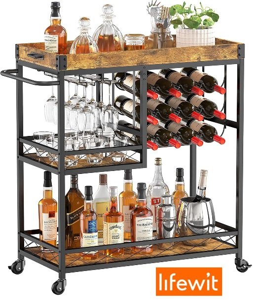 lifewit 3-tier bar cart for home with Lockable wheels - 31.5" x 15.7" x 36.6" - black