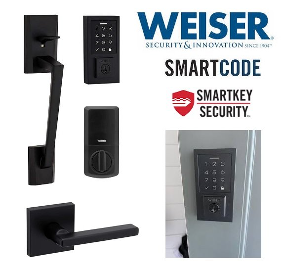 WEISER SmartCode Touchpad Electronic Contemporary Deadbolt & Handleset Combo Pack WITH Smartkey Security - MATTE BLACK (MODEL: 1704140/GED9720-CNT-514)