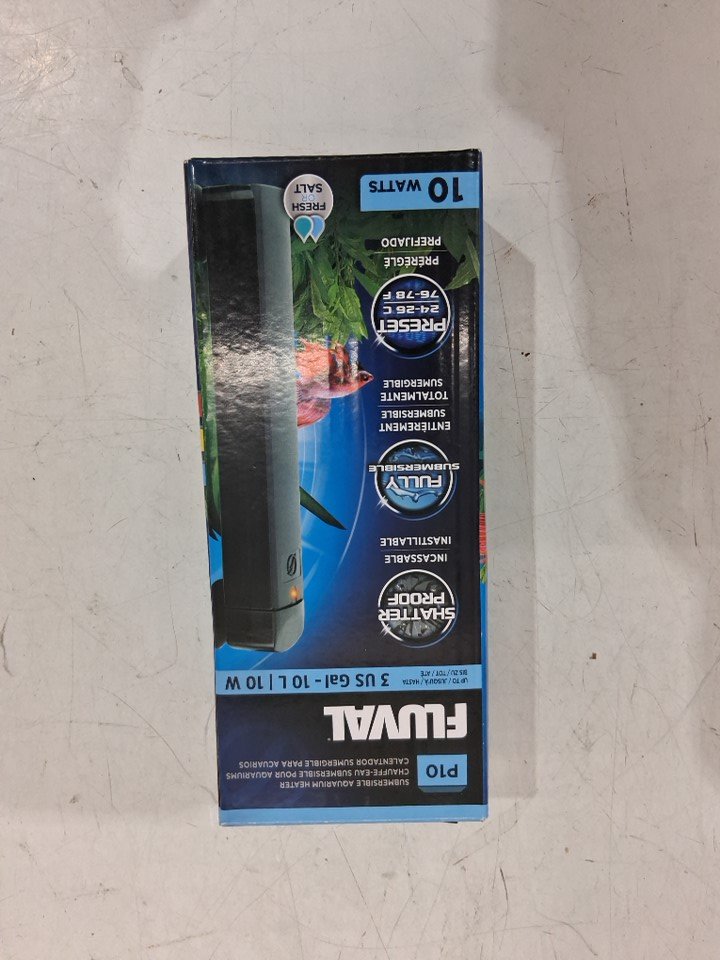 FLUVAL P10 SUBMERSIBLE FISH TANK AQUARIUM WATER HEATER FOR FRESH AND SALT WATER - FOR TANKS UP TO 3 GALLONS - 10W - BLACK (MODEL: A743)