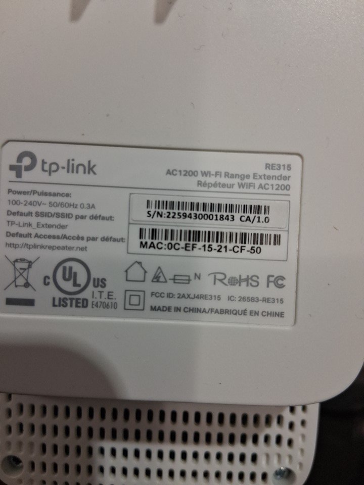 Tp-Link AC1200 Dual-band WiFi Range Extender (Model: RE315)