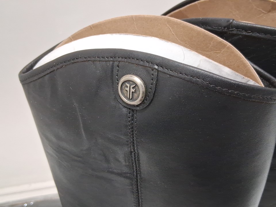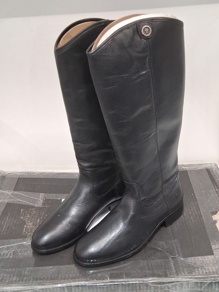 women's frye melissa double sole button lug tall western boot - 8M - black