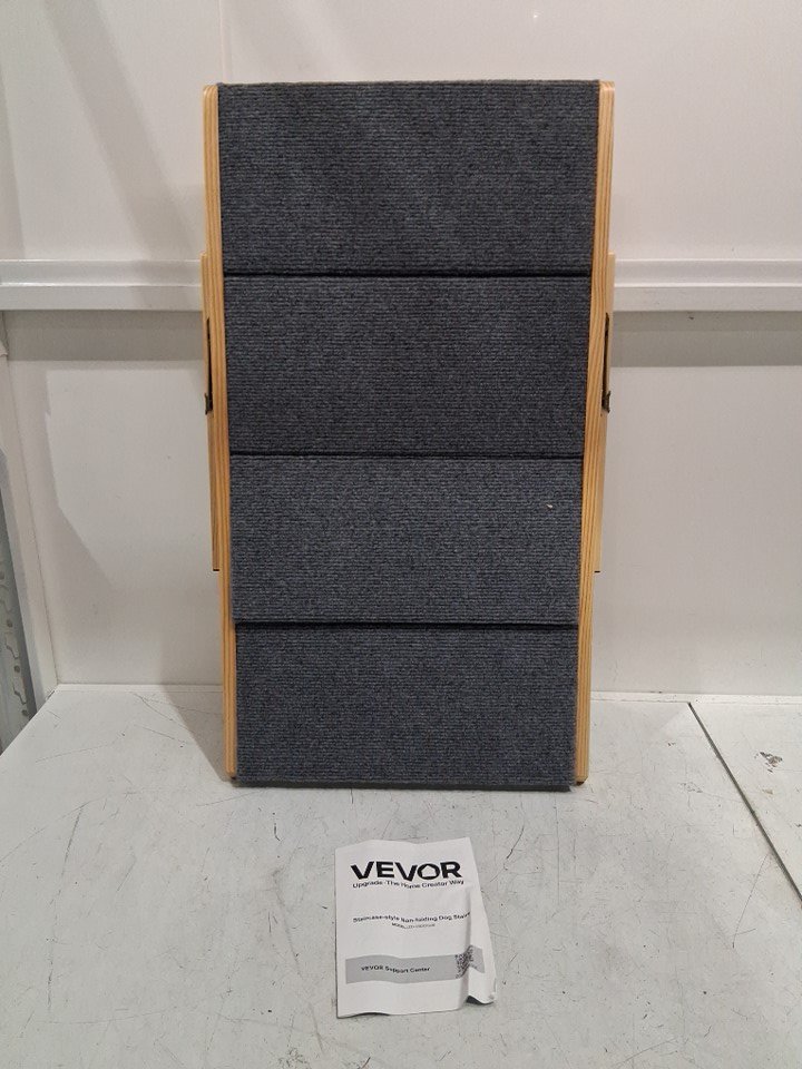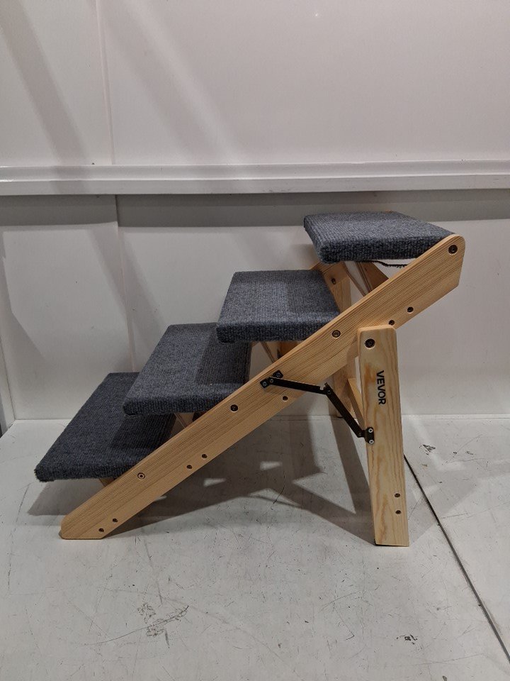 Wooden 4 Step Collapsible Pet Stairs - 150LBS MAX - Wood/Grey Carpet (MODEL: ZDDOG06)