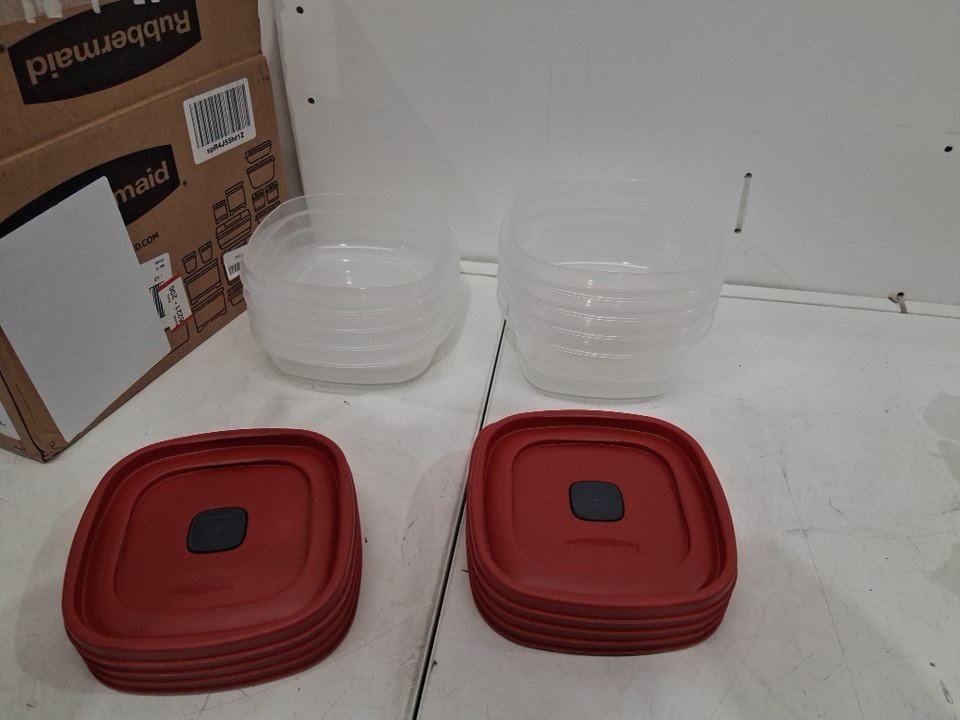 16pc Rubbermaid Microwave and Dishwasher Safe food storage containers with leads and steam vents - red (model: 2108392)