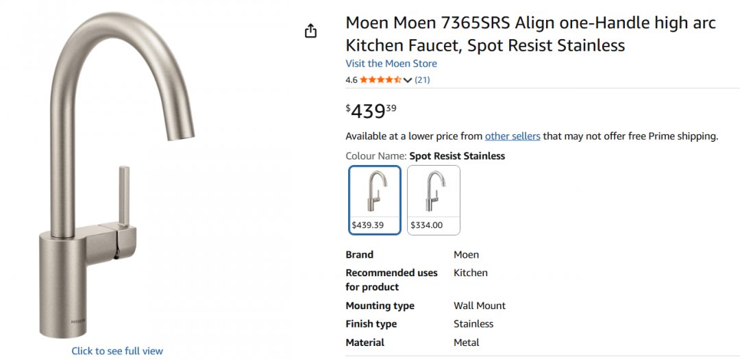 Moen Align one-Handle high arc Kitchen Faucet - Spot Resist Stainless (Model: 7365SRS)