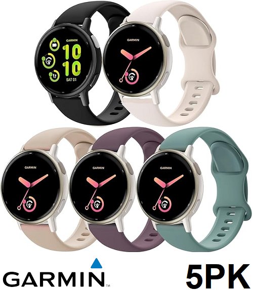 5pk zocovin silicone watch bands - for Garmin Vivoactive 6 / Vivoactive 5 / Forerunner 55 - green / nude / rose pink / black / beige