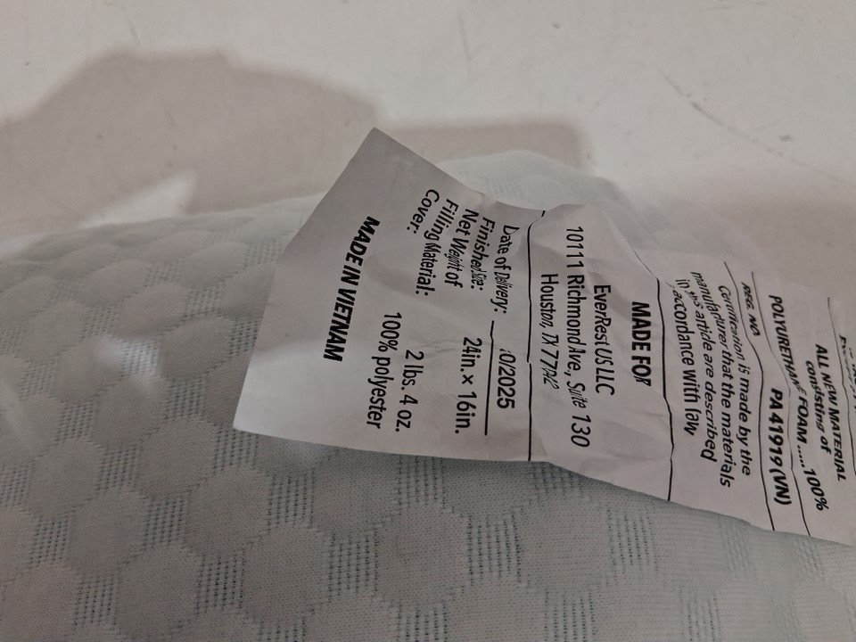 Everrest GEl Memory Foam Pillow - STANDARD 24" x 16" - WHITE