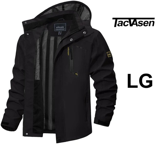 men's tacvasen OUTDOOR SPORTS lightweight hooded rain jacket - LARGE - BLACK