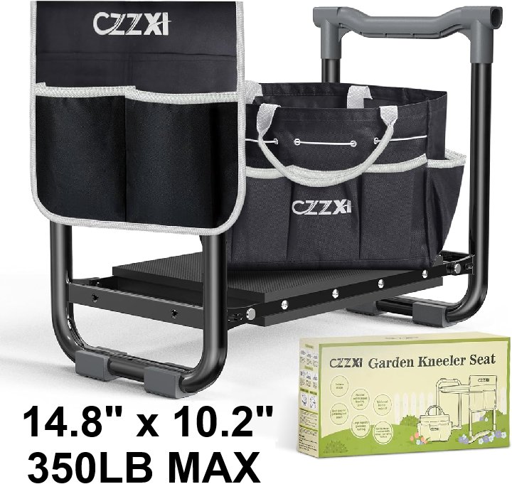 CZZXI Heavy Duty Garden Kneeler and Seat with Thicker Kneeling Pad - 14.8" x 10.2" - 350LB MAX - Grey/Black - (Model: CZZXI Garden Kneeler and Seat)