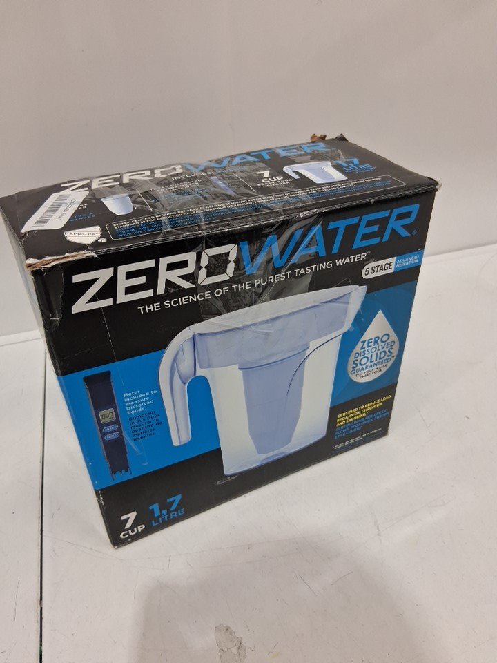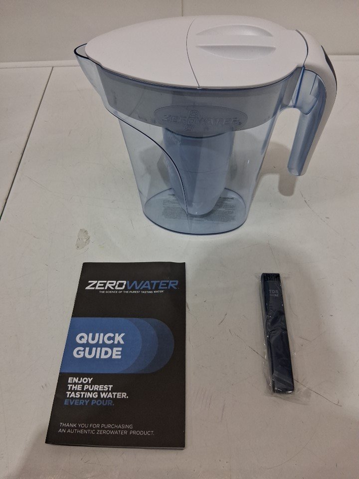 culligan ZeroWater Ready Pour Water Filtration Pitcher WITH WATER QUALITY METER AND SINGLE FILTER - 1.7L - WHITE/BLUE (MODEL: ZP-007RP)
