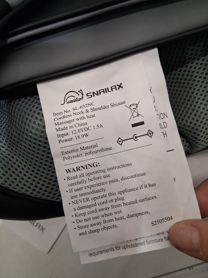 SNAILAX SHIATSU NECK SHOULDER & BACK MASSAGER WITH HEAT FUNCTION - 18W - BLACK (MODEL: SL-632nc)