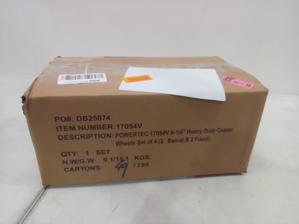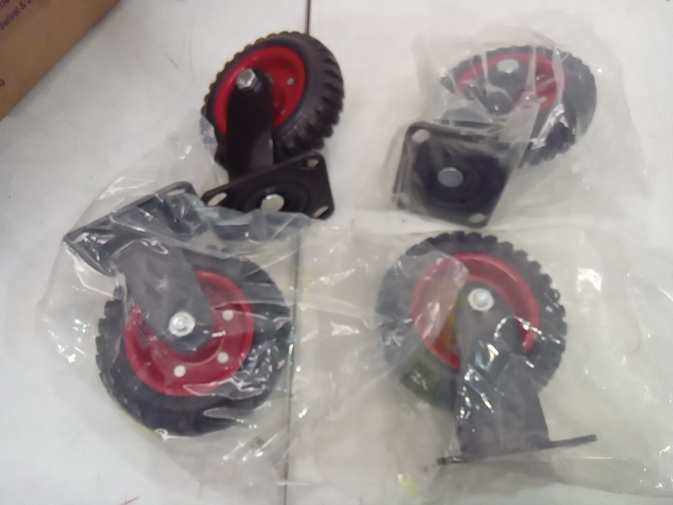 4PK POWERTEC 6" Heavy-Duty Caster Set (2 Swivel & 2 Fixed) with Rubber Knobby Tread, Solid Rubber Wheels with Steel Hub, 330 lb Load Capacity Per Wheel and Plate Mount (Model: 17054V)