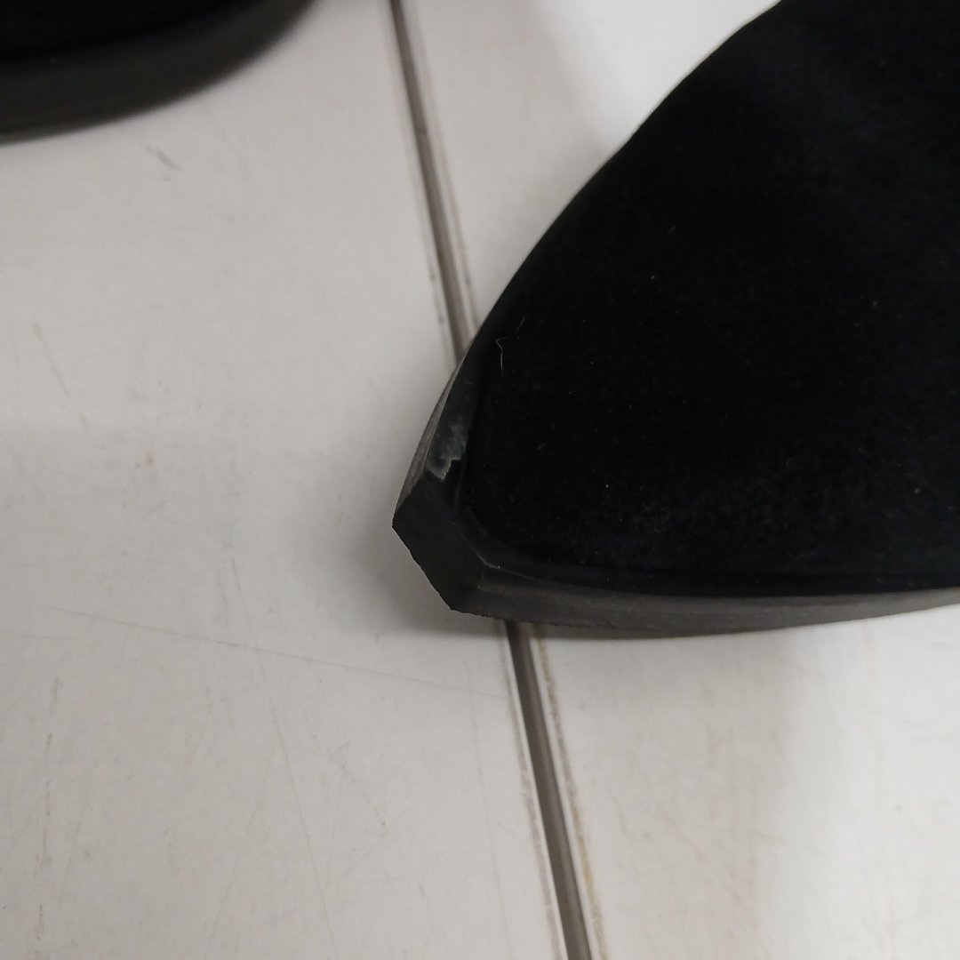 Minor scuff on the front of one boot, as well as minimal signs of light use on soles.