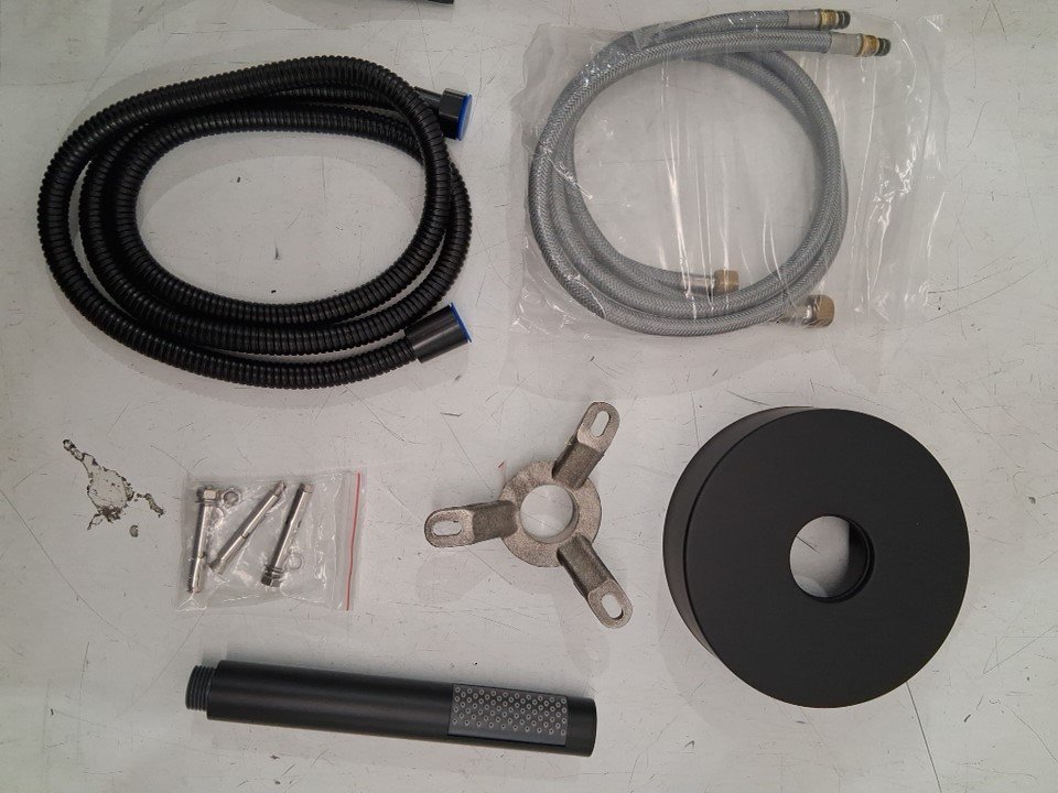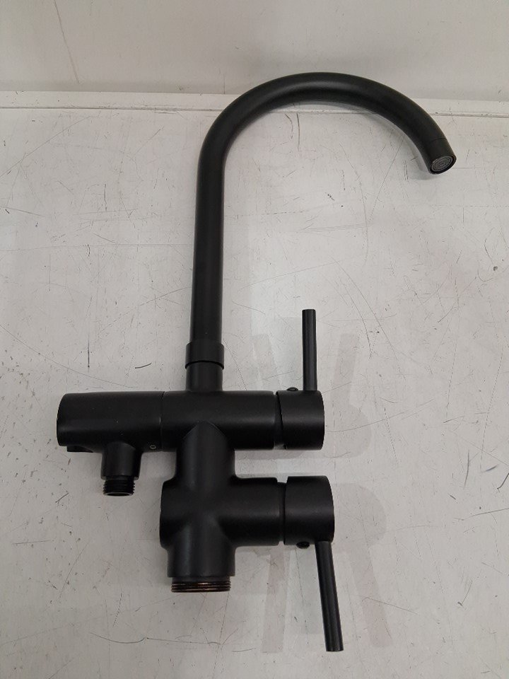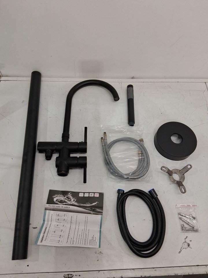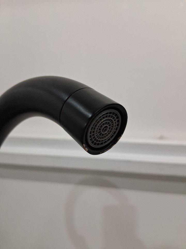 Faucet has minor scuffing around screw attachment, calcium residue around spout indicating prior short-term use. (See photos)