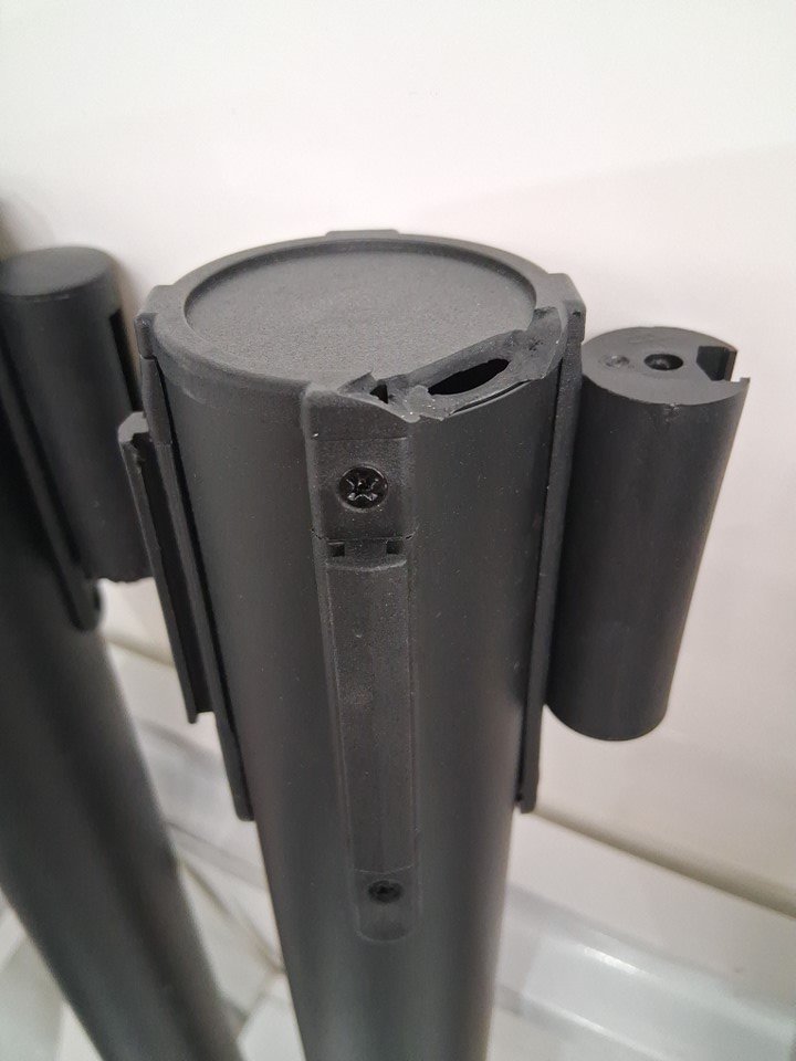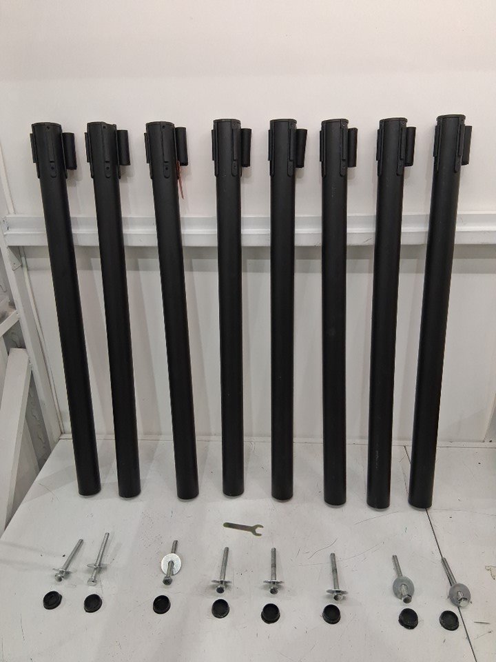 One Stanchion and one Stand have minor cosmetic damage. Dirt residue on stands indicates prior short-term use. (See photos)