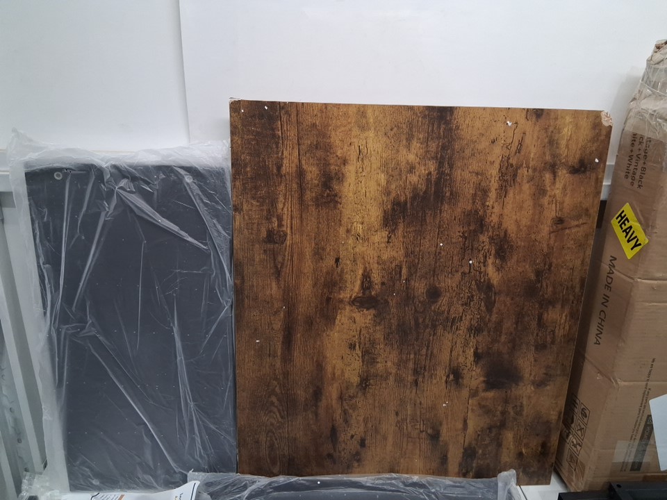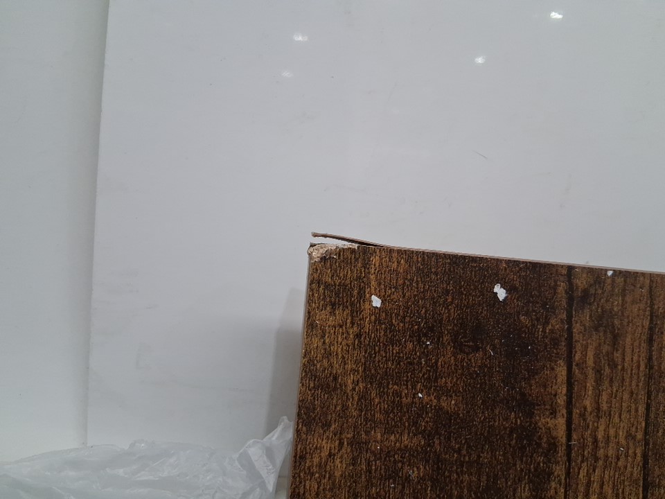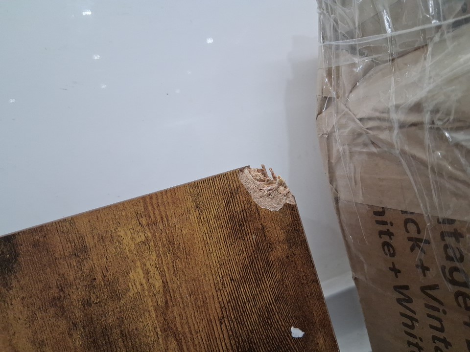 There are some scratches on some of the pieces and two of the corners on the tabletop are damaged (see photos)