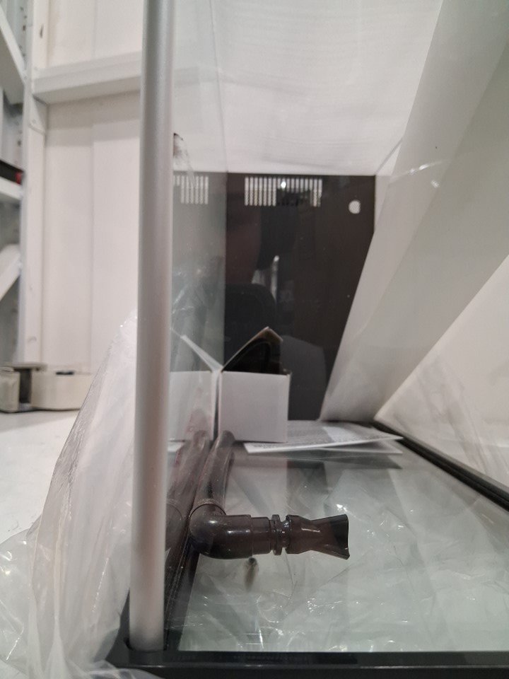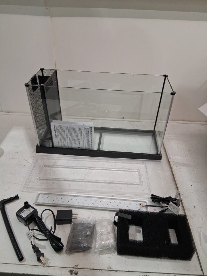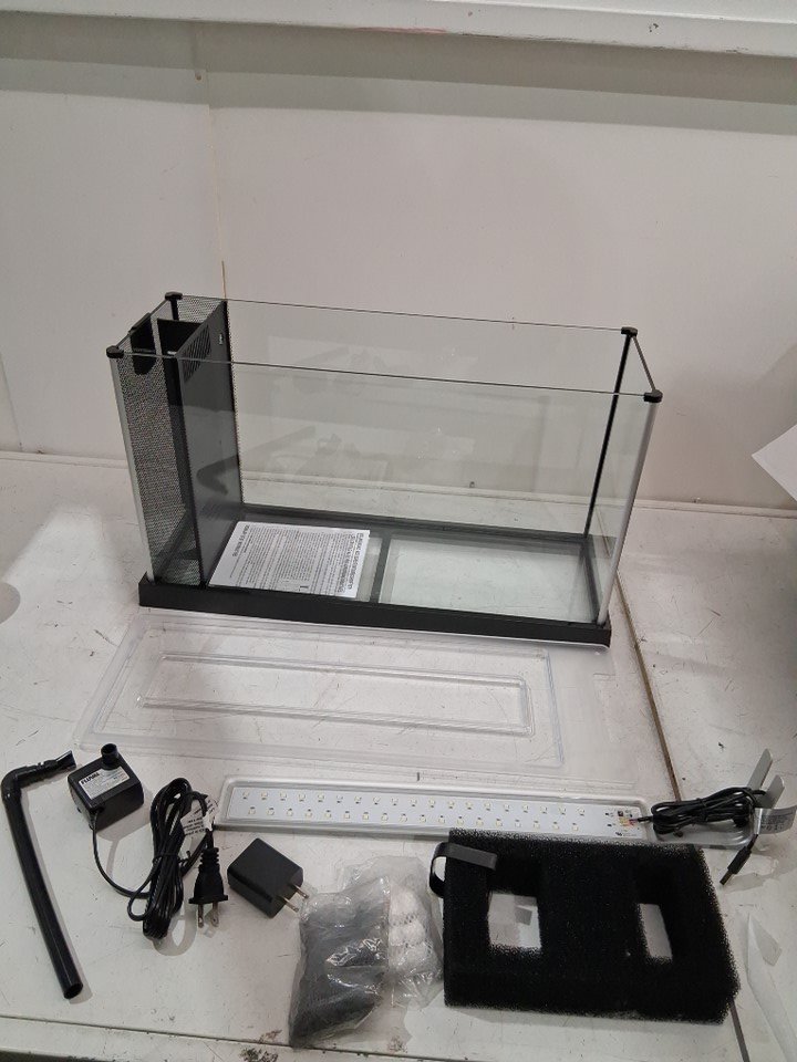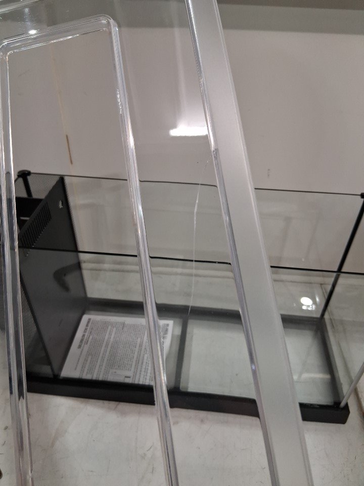 there is small crack in lid from shipping there is also some dried silicone on outer glass that could be removed if desired, please note there is some dust and light dirt in box from shipping and everything will need proper cleaning before set up