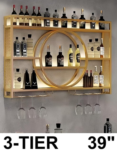 3-Tier Metal Wall Mounted Wine Rack - 39" - gold