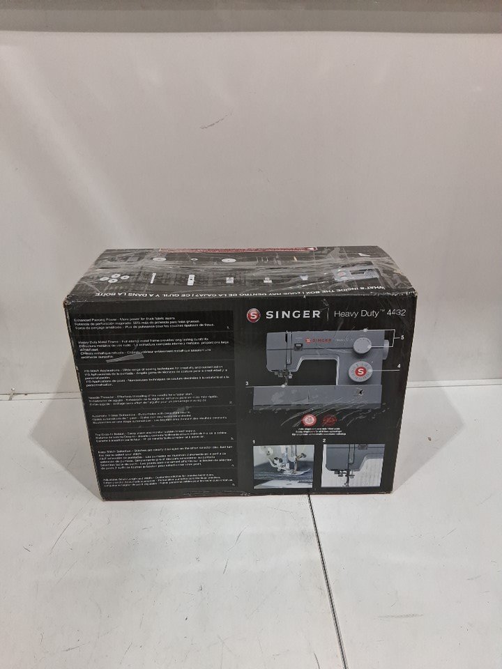 Singer Heavy Duty Extra-High Speed 32-Stitch Sewing Machine with Metal Frame and Stainless Steel Bedplate - Grey (model: 4432)