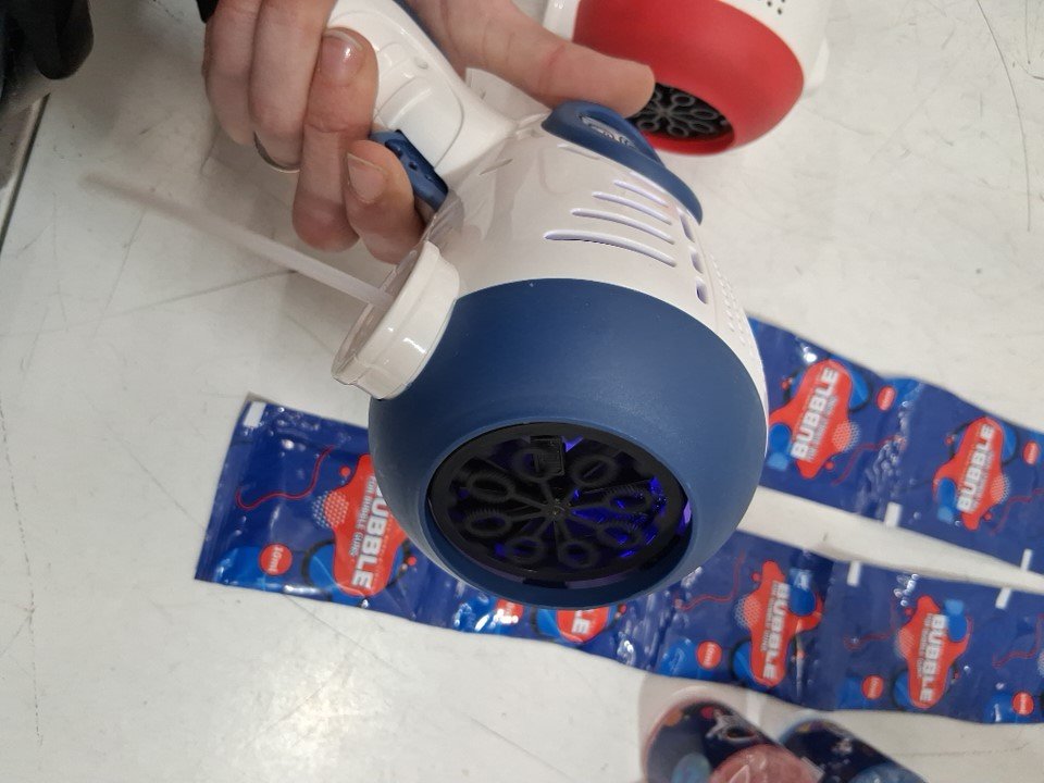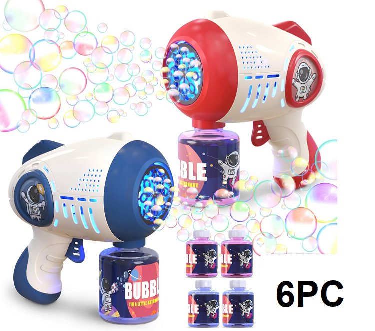 6PC Eaglestone AUTOMATIC LIGHT UP Bubble Gun MAKER - blue/red