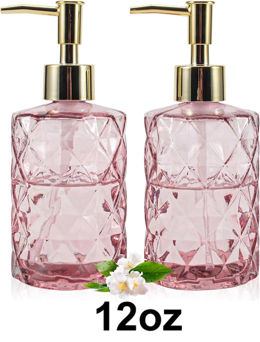 2pk goyisee soap dispenser with pump - 12oz each - diamond pattern pink/gold