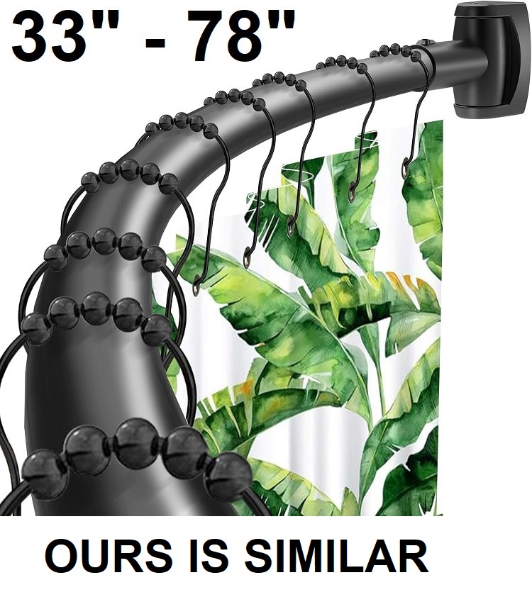 CURVED ADJUSTABLE NEVER RUST SHOWER CURTAIN ROD - 33" - 78" - BLACK