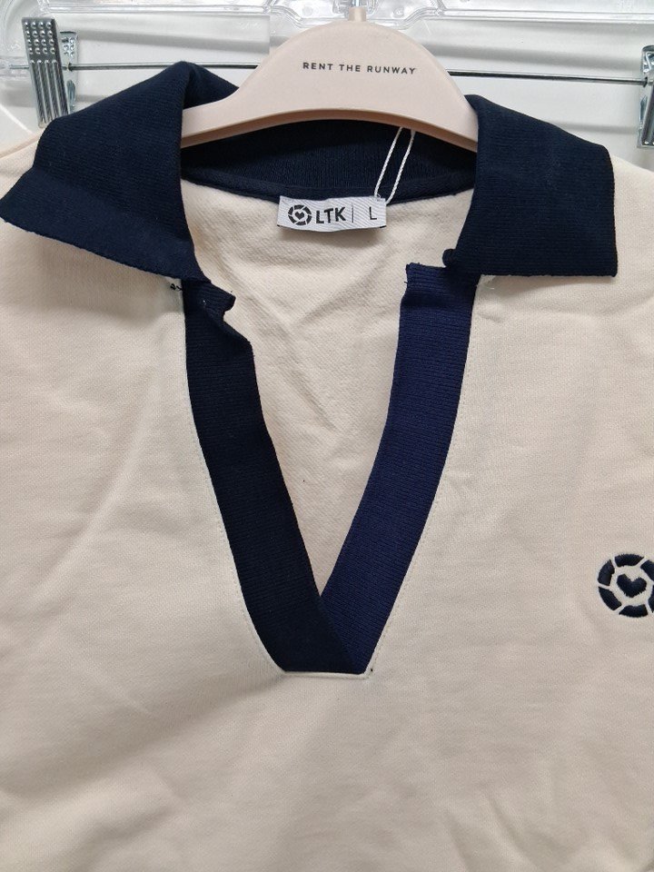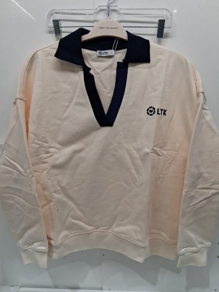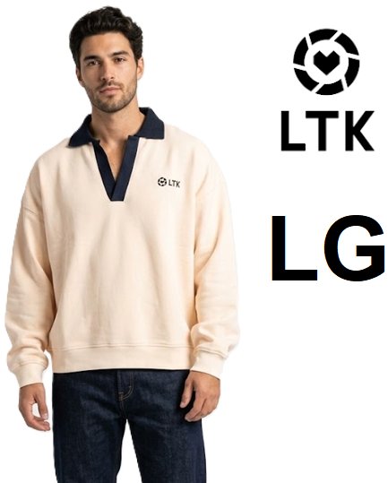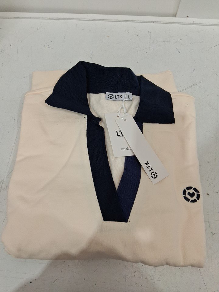 MEN'S ltk loose fit v-neck collared long sleeve sweater - LARGE - CREAM / NAVY BLUE