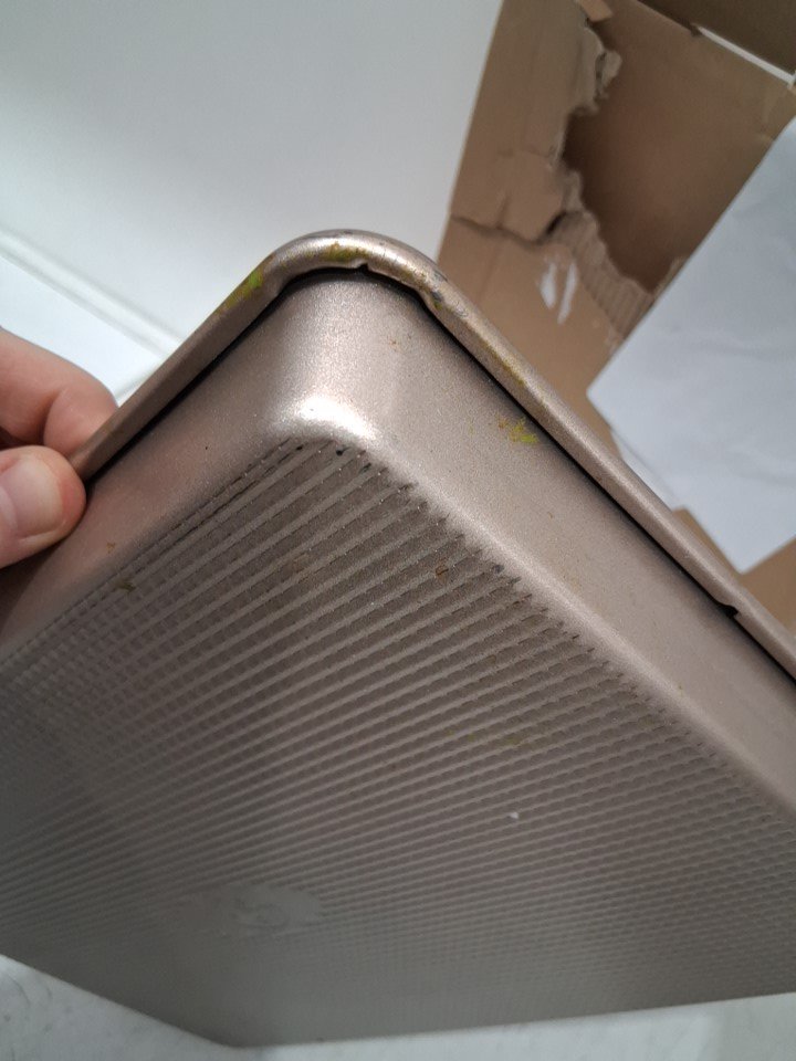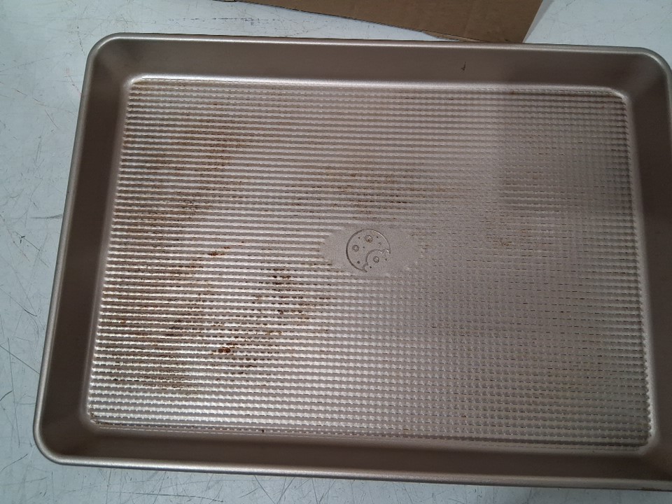Please note there are markings on the pan from previous use. it should be cleanable. see photos.