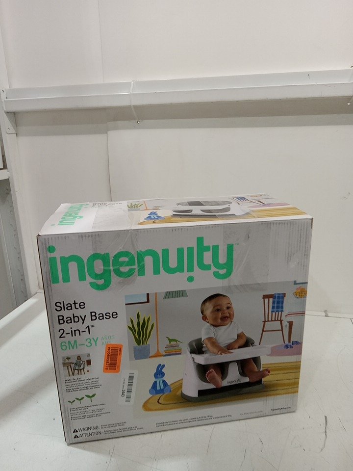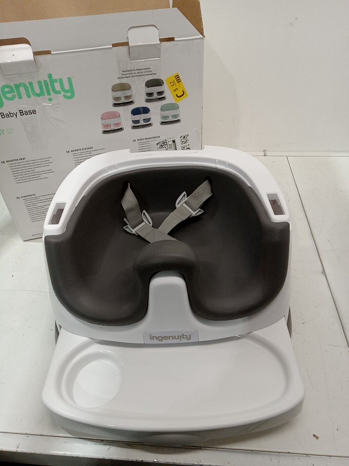 INGENUITY BABY BASE 2-IN-1 BOOSTER SEAT WITH FOOD & DRINK TRAY - 50LBS CAPACITY - WHITE/SLATE GREY (MODEL: 11576)