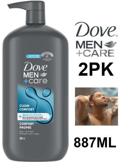 2PK Dove Men+Care Body and Face Wash - clean comfort - 887ml each