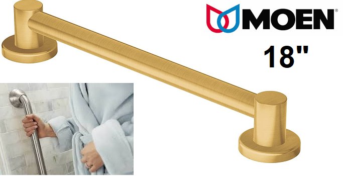 MOEN ALIGN MODERN DESIGNER GRAB BAR, 18", BRUSHED GOLD (MODEL: YG0418BG)