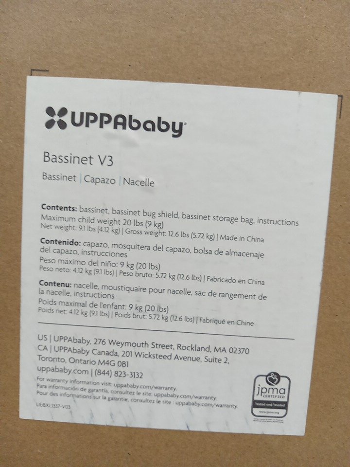 UPPAbaby Bassinet V3 - Compatible with Vista, Cruz, Ridge Strollers - 20lbs max - Declan Oat Mélange/Silver Frame - (model: 0903-bas-na-DCL)