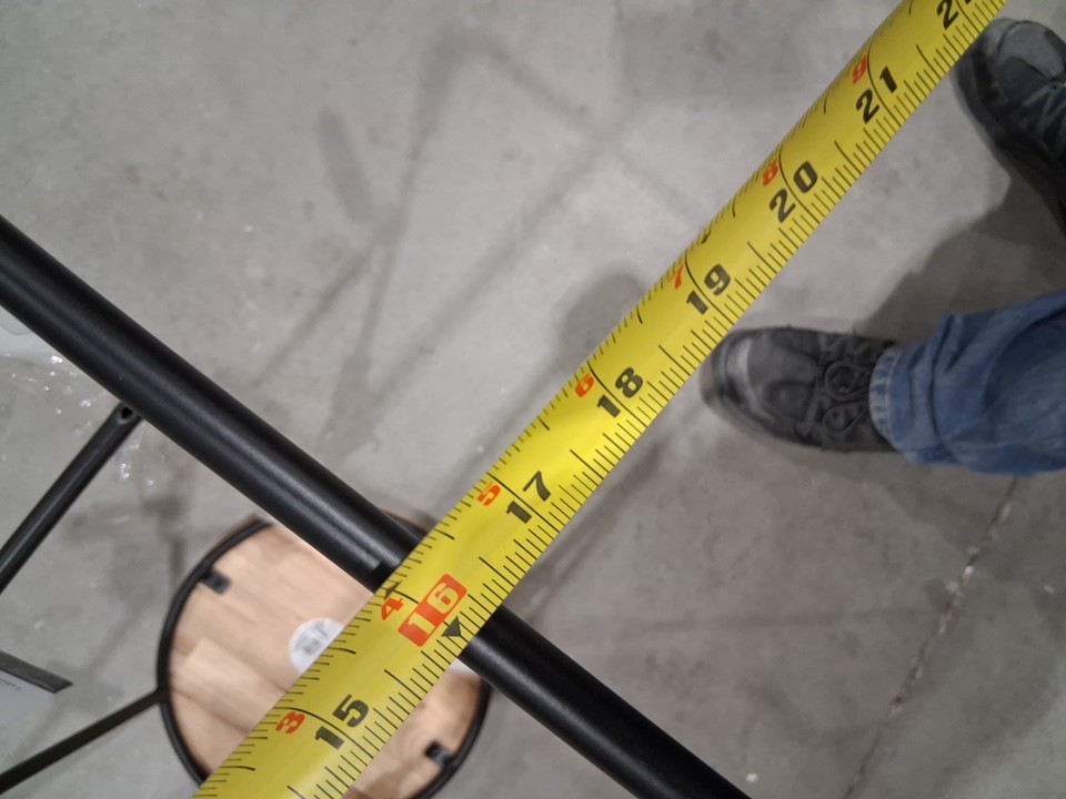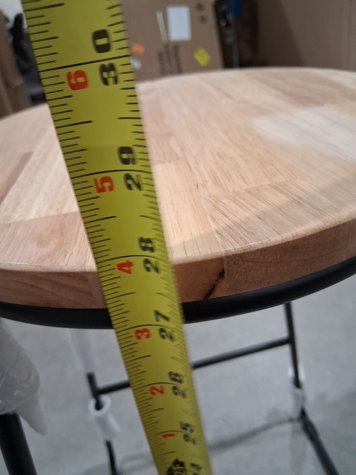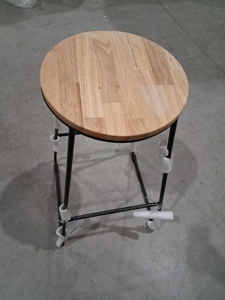 Industrial Round Oak Stool with Square Metal Base - 16" x 28" x 12.5" - OAK/BLACK
