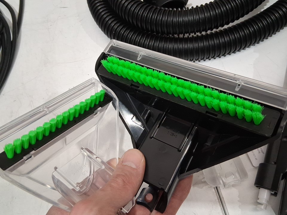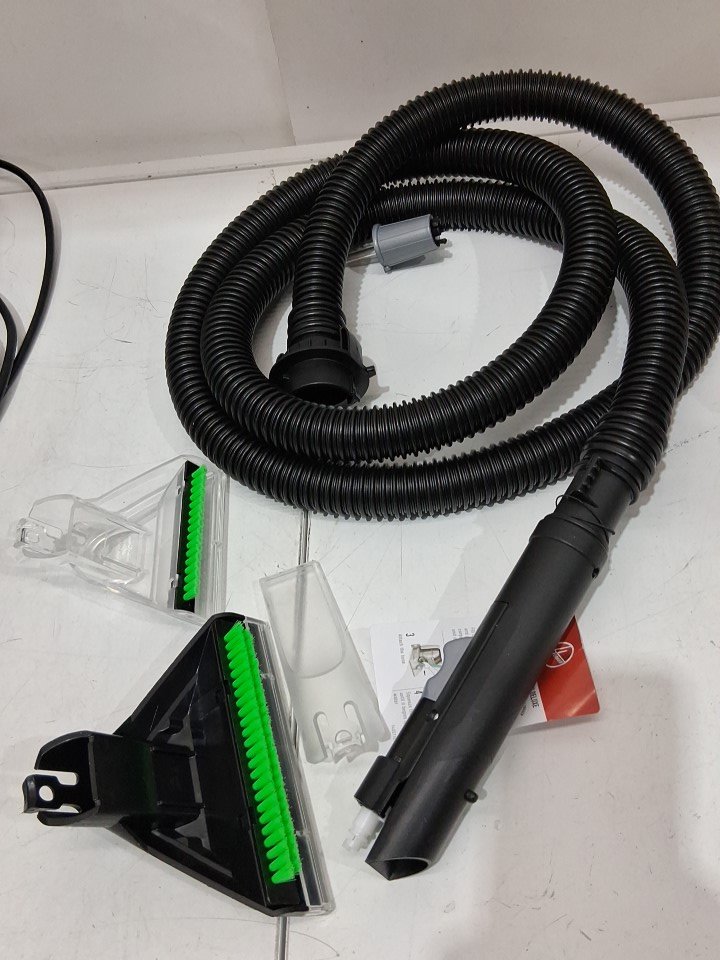 **Tested for power.** Item has residual water in the reservoir, light scuffs/debris in the dirty water tank, some wear/debris around the circular brush heads, does not include any cleaning solution from previous use, see photos.