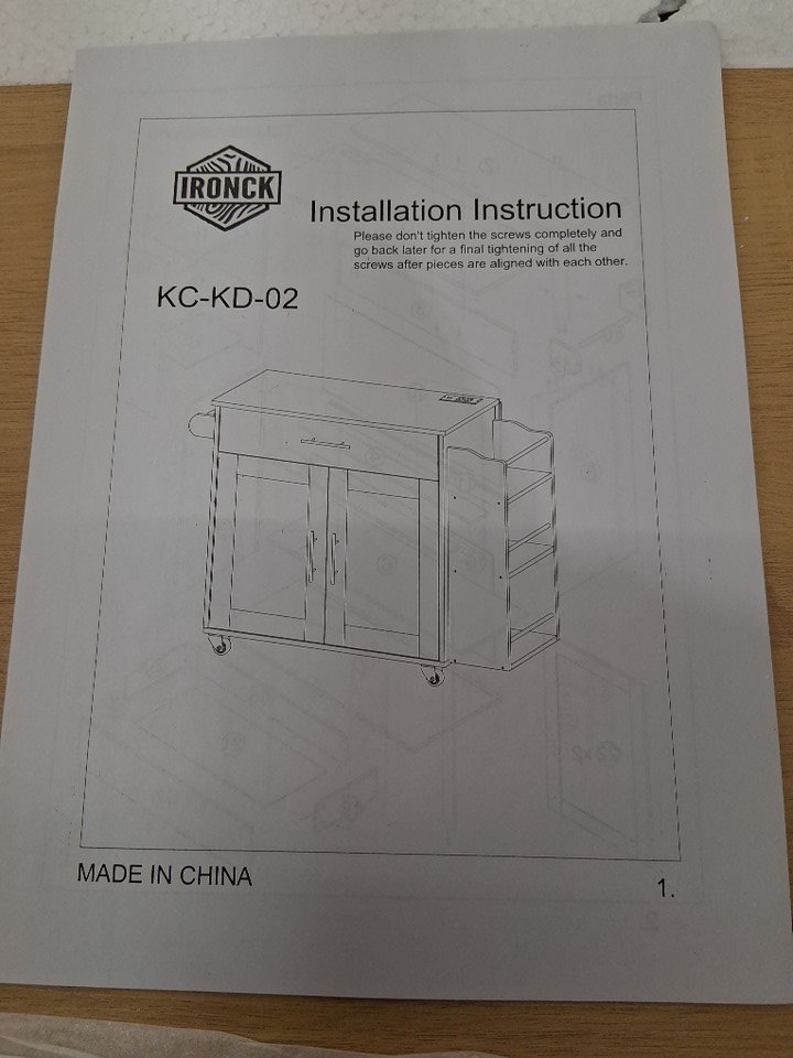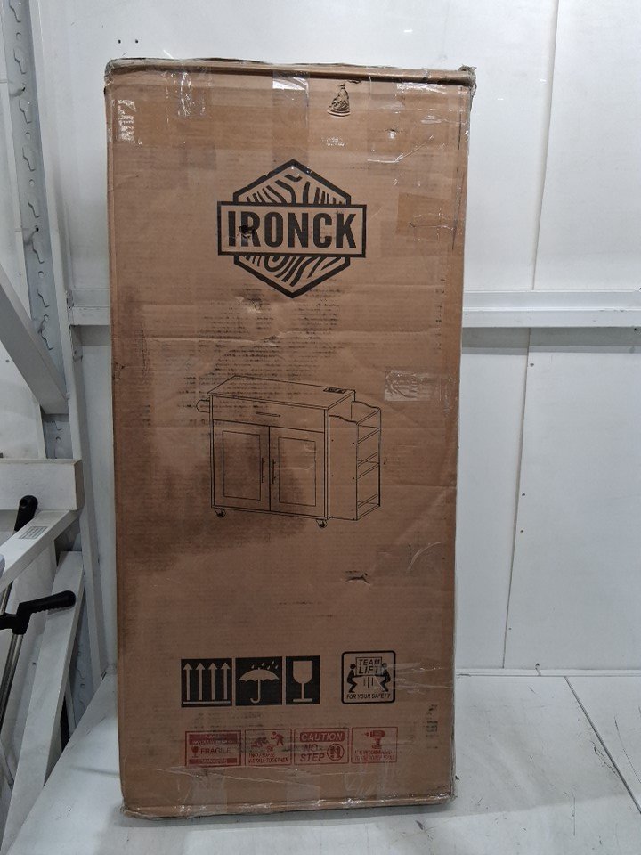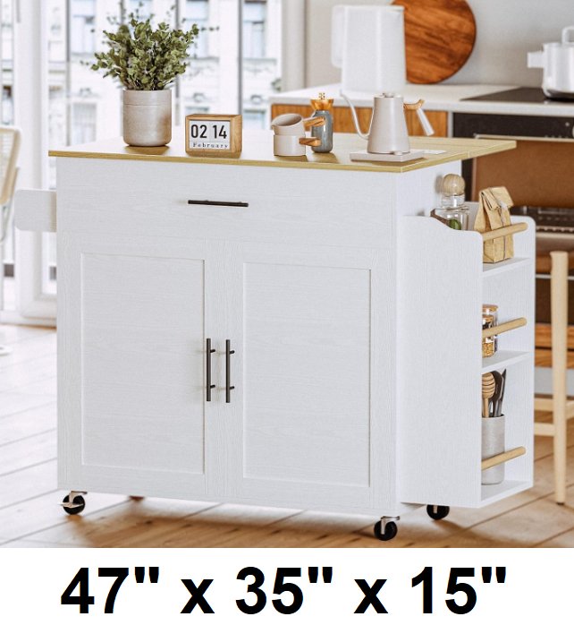 IRONCK Kitchen Island on Wheels with Drop Leaf, 3 Open Spice Rack Shelf - 35" x 47" x 15" - white - (model: KC-KD-02)