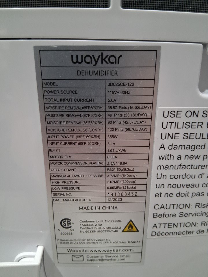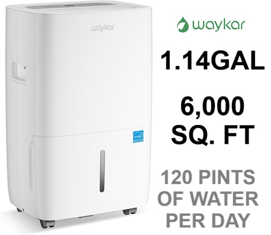 Waykar 120 Pints Energy Star Dehumidifier- for Spaces up to 6,000 Sq. Ft 1.14 Gallons Water Tank-WHITE-(model: jd025ce-120)