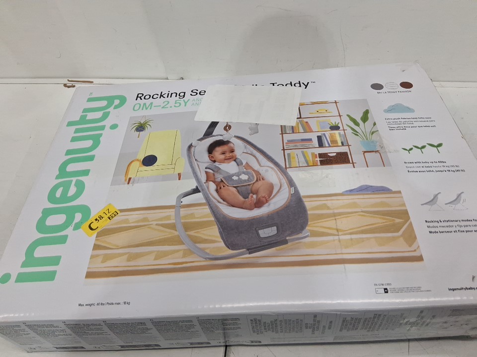 INGENUITY BOUTIQUE COLLECTION ROCKING SEAT Bella Teddy FOR BABY - 0 Months to 2.5 Years - WHITE/GREY (MODEL: 10986-EES)