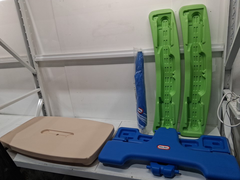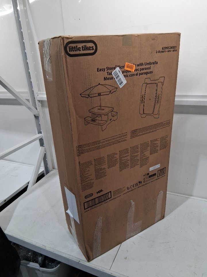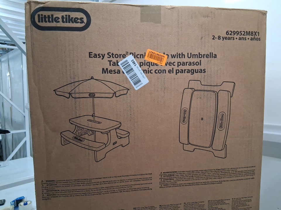 LITTLE TIKES EASY STORE PICNIC TABLE WITH UMBRELLA - 200lbs capacity - BLUE/GREEN (MODEL: 629952M8X1)