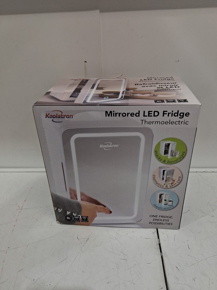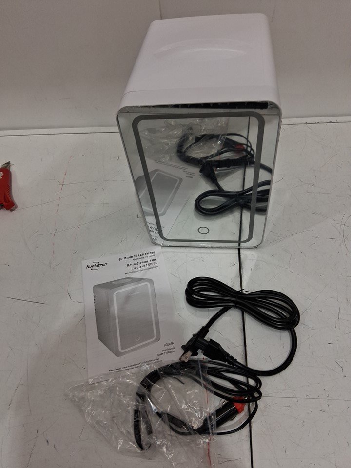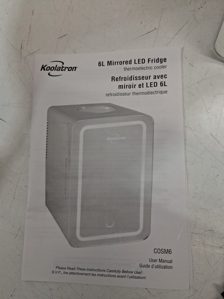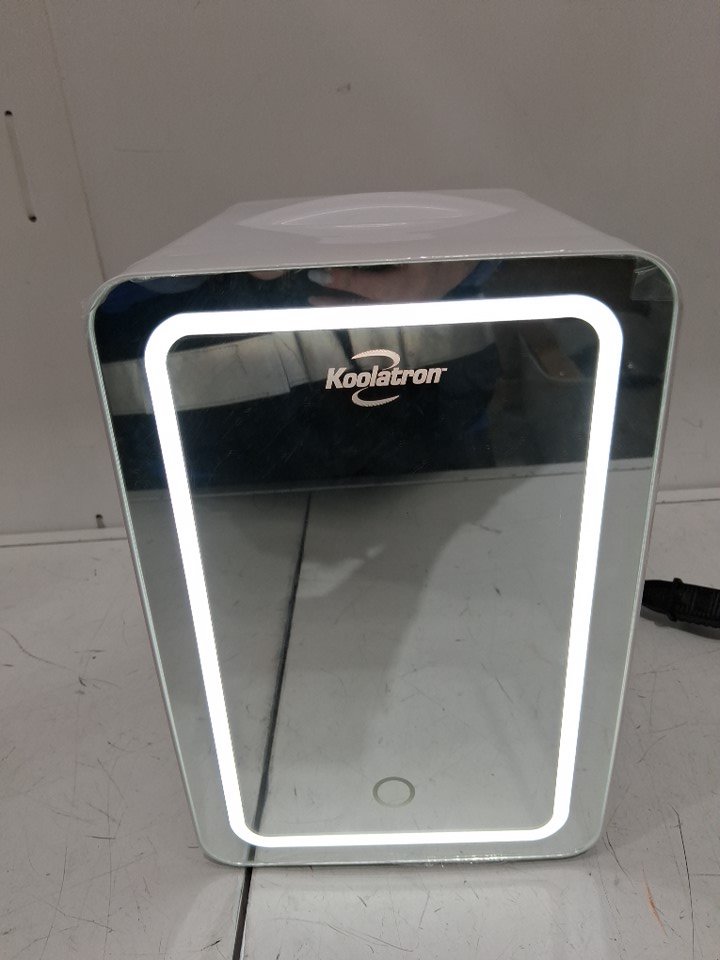 KOOLATRON COMPACT MIRRORED MINI FRIDGE WITH LED LIGHT - 6L - 120V AC - WHITE (MODEL: COSM6)