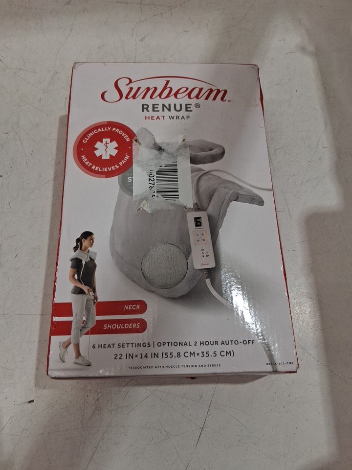 SUNBEAM RENUE SHOULDER/NECK HEAT WRAP WITH 6 HEAT SETTINGS and AUTO-OFF - 22" x 14" - GREY - (MODEL:885EX-811-CNR)