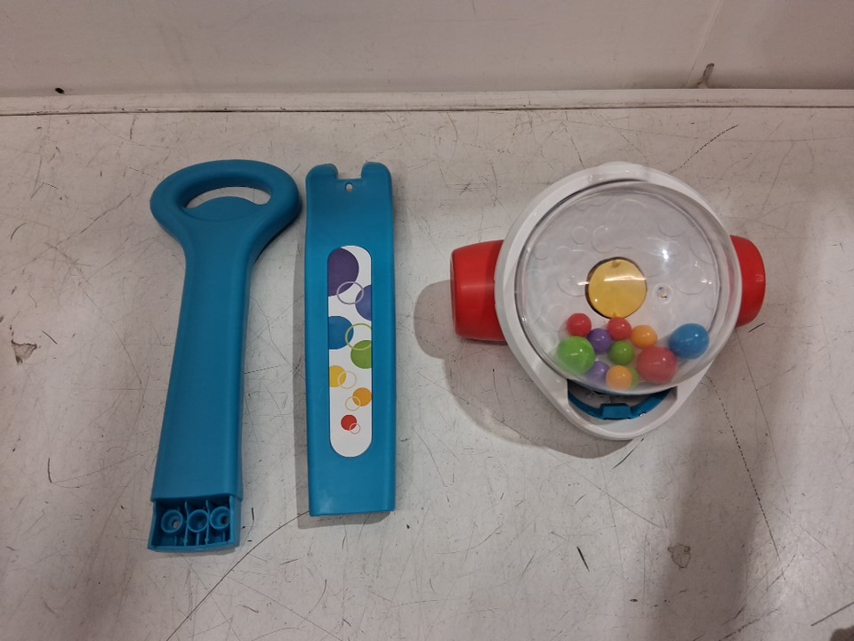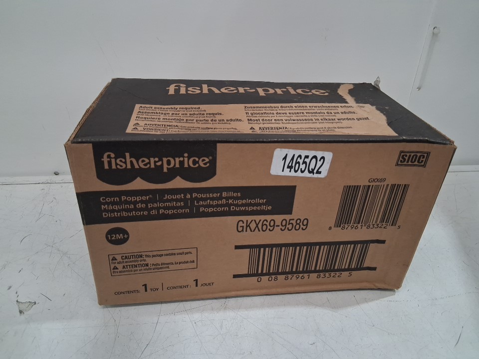 TODDLERS FISHER-PRICE CORN POPPER PUSH TOY WITH BALL-POPPING ACTION - WHITE/BLUE (MODEL: GKX69)