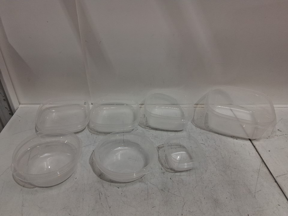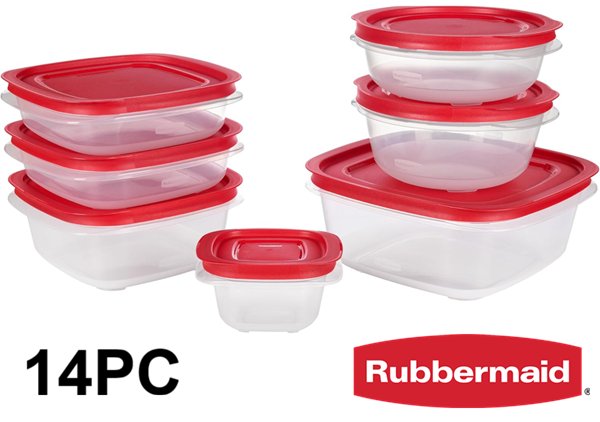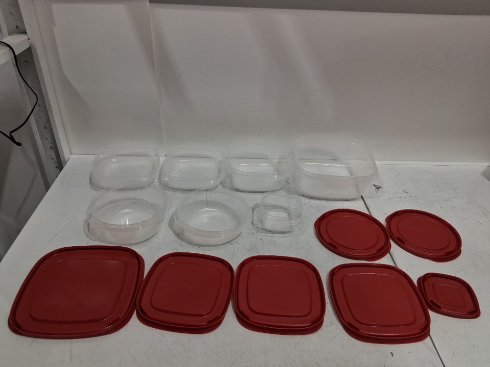 14PC RubberMaid Plastic Round and Square Storage Container Set - Red Lid
