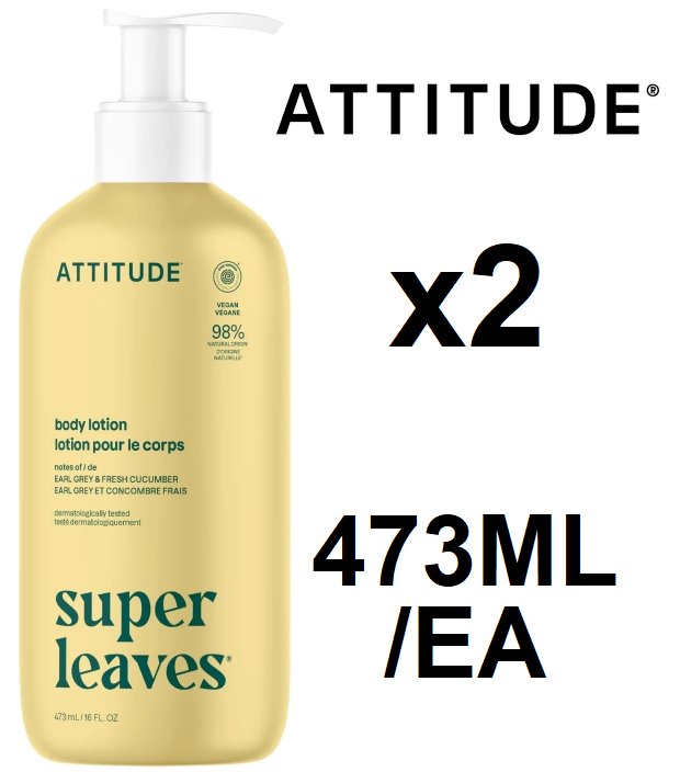 2 attitude super leaves body lotions - 473ml each - early grey and fresh cucumber