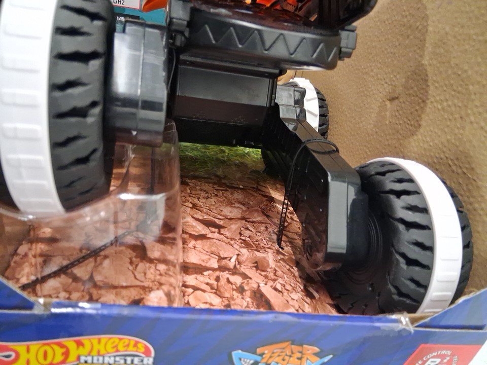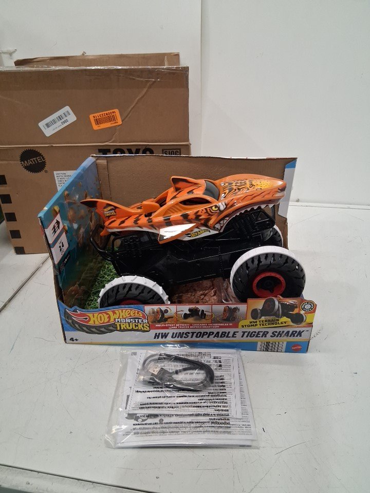 **Please note** monster truck is still factory zip tied to inner packaging, however remote control is missing, can still be used as a toy car