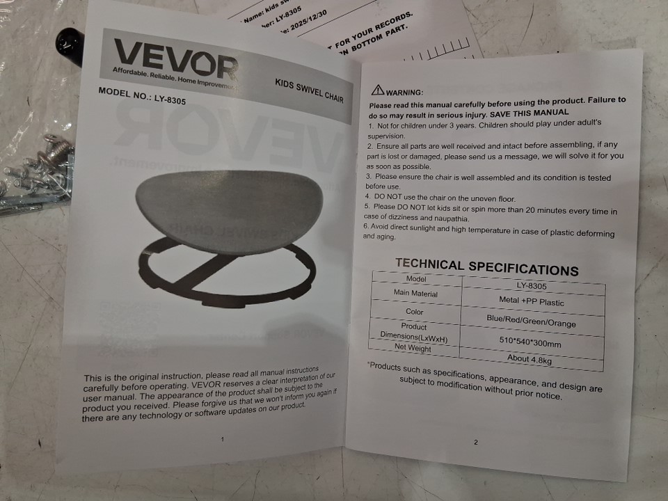 Kids non-slip sensory swivel chair - 220LB Cap - RED (model: LY-8305)