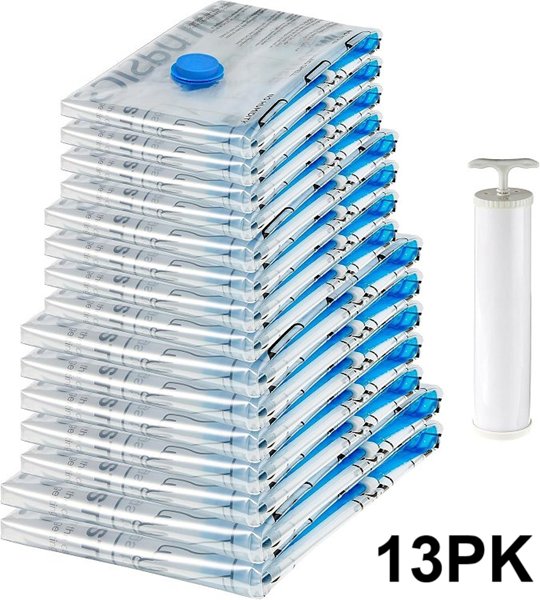 13pk Amazon Basics Vacuum Compression Space Saving Storage Bags with Hand Pump - Multiple Sizes - White