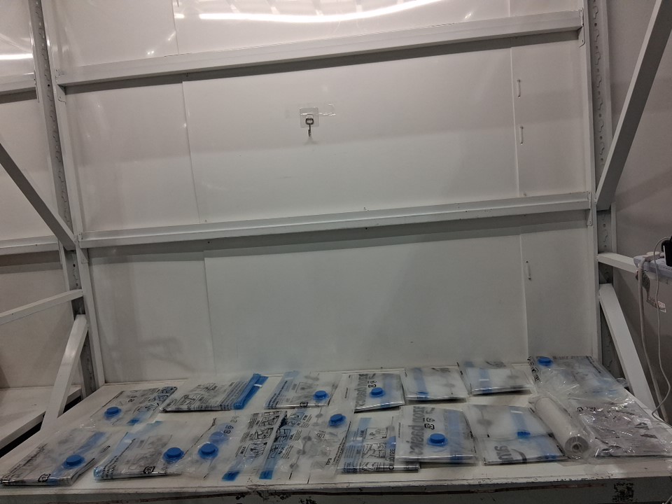 From inspecting item only appears to have small and large bags, see photos.