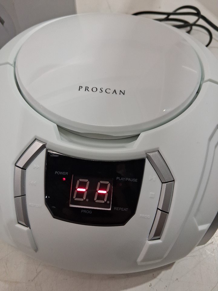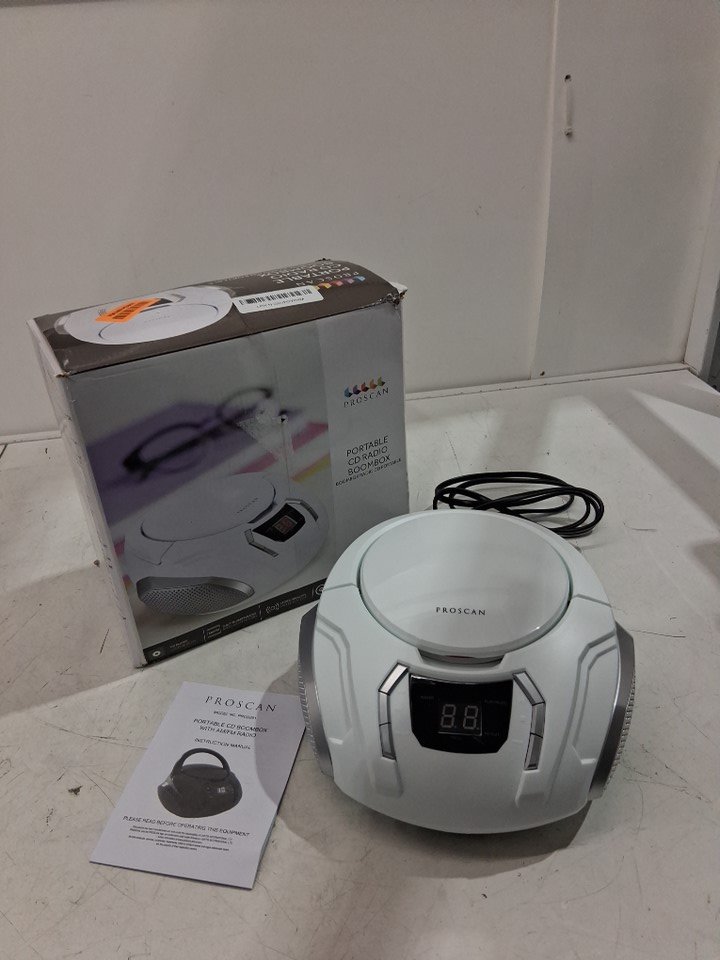 PROSCAN BOOMBOX/PORTABLE CD PLAYER WITH AM/FM RADIO AND AUX INPUT - white (MODEL: PRCD261-white)