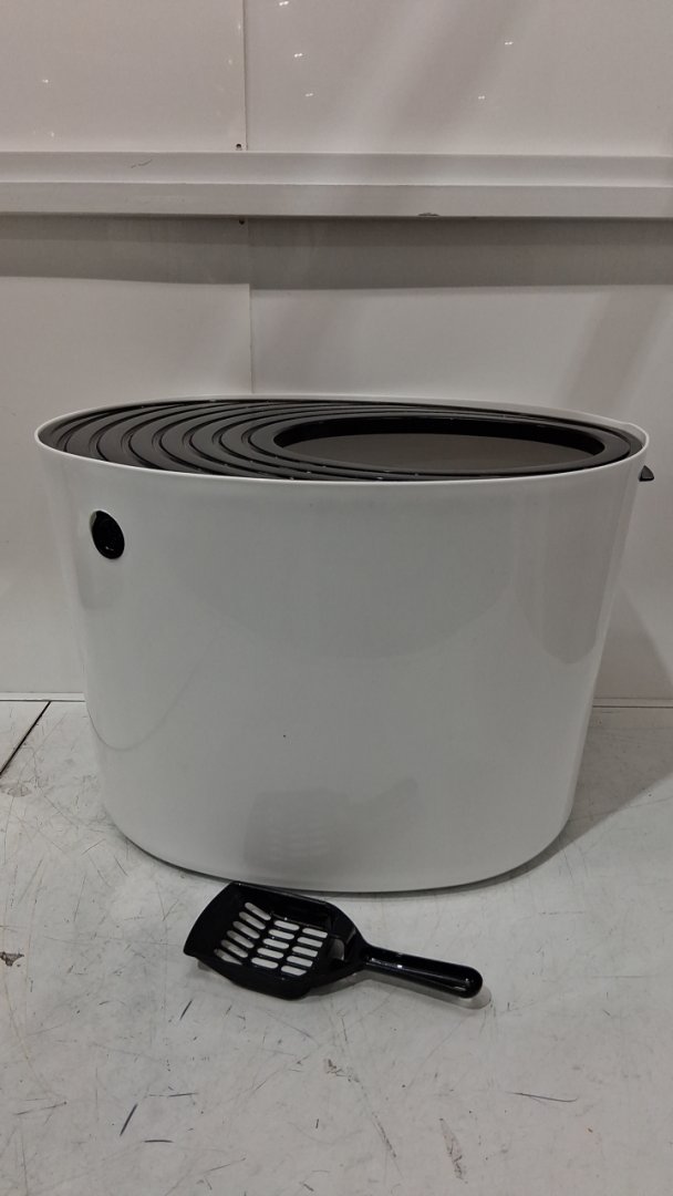 IRIS USA COVERED TOP-ENTRY SCATTER-PREVENTING CAT LITTER BOX - LARGE/20.47" x 16.14" x 14.56" - WHITE/BLACK - (MODEL: PUNT-530)
