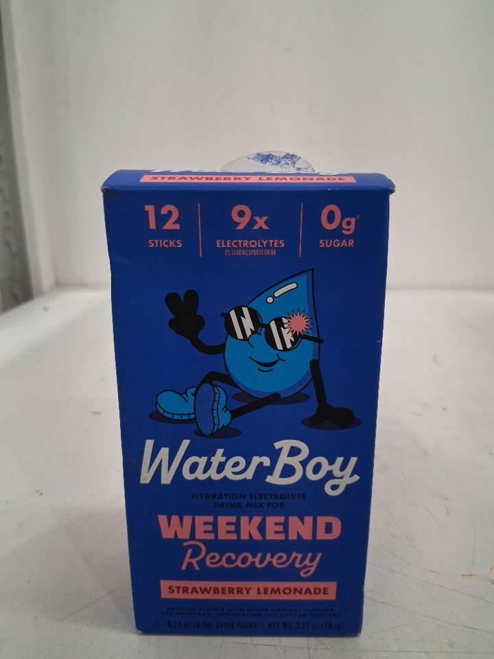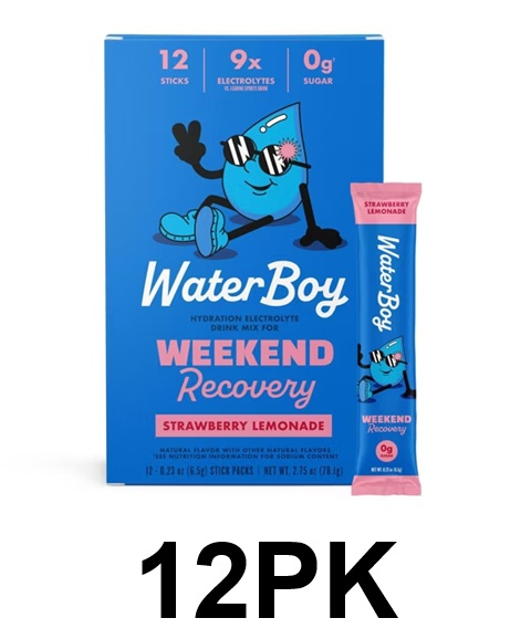 12PK Waterboy Hydration + Weekend Recovery Vegan Dietary Supplement Powder - 2.75oz (Each) - Strawberry Lemonade