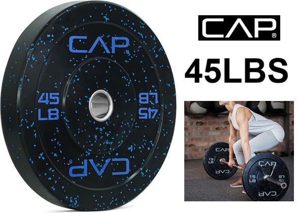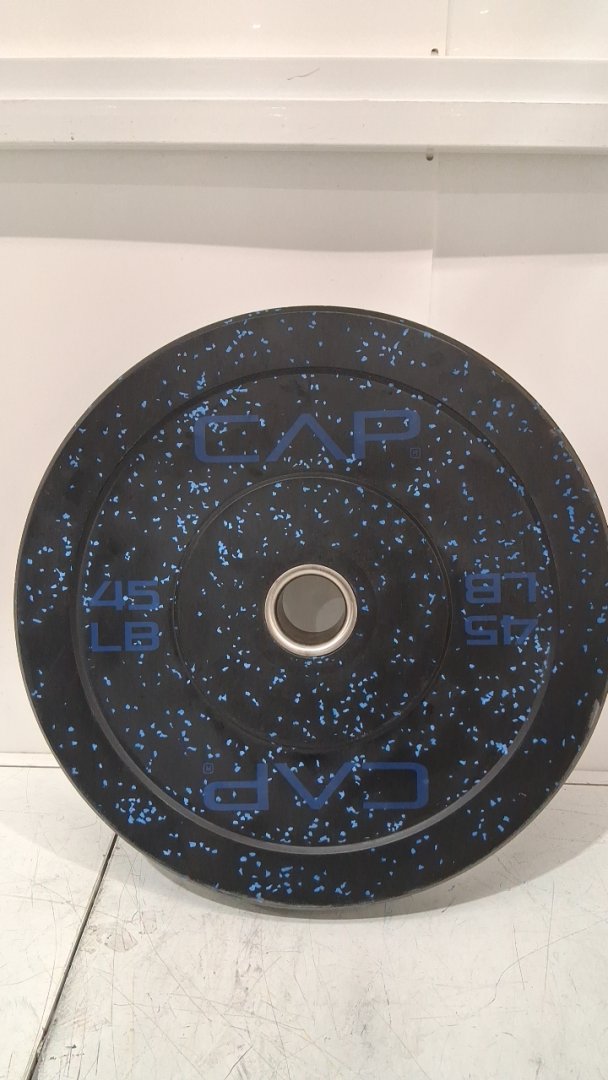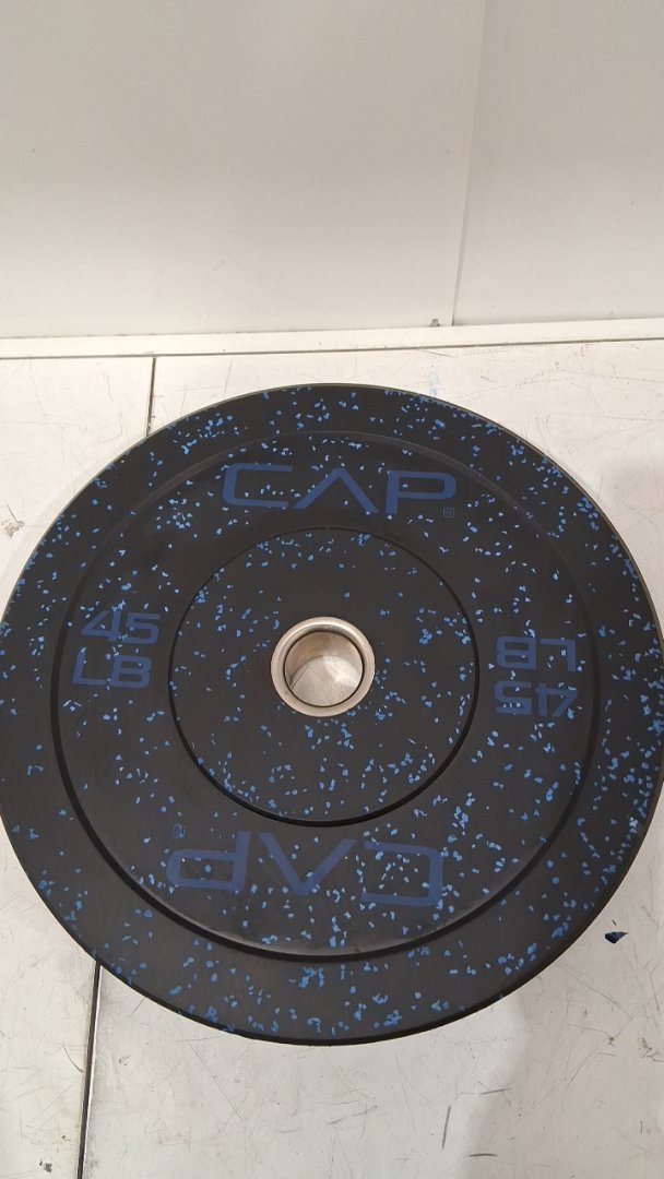 cap barbell olympic speckled bumper plate - 45lbs - black/blue (model: OPR9IS-045)